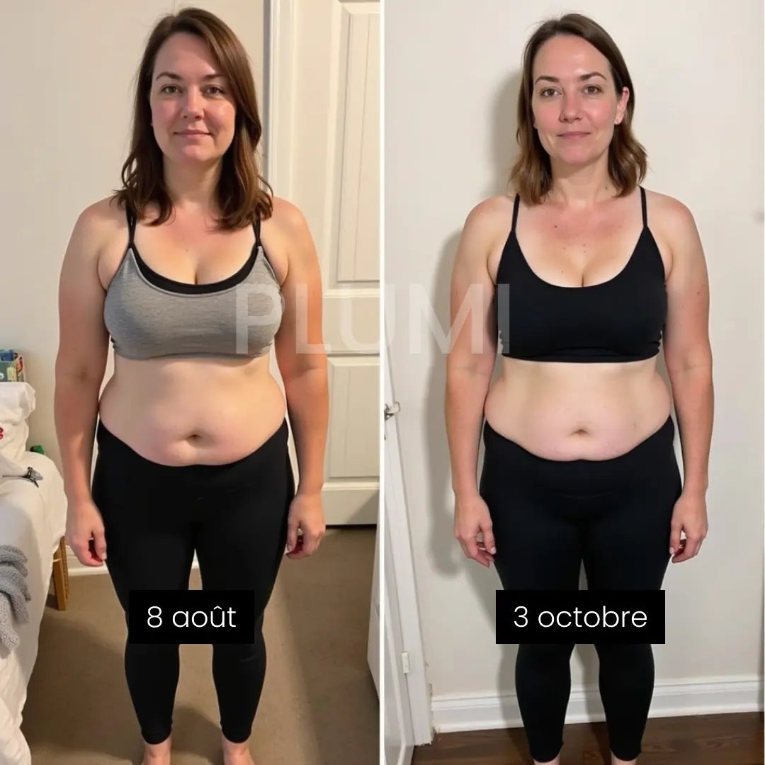 Je ne laisse jamais d'avis, mais je devais dire merci parce que les résultats sont incroyables ! J'en avais tellement marre de me regarder dans le miroir et de me sentir bloquée. Je me sens enfin à nouveau moi-même, et je rentre même dans des vêtements que je n'avais pas portés depuis avant ma grossesse.